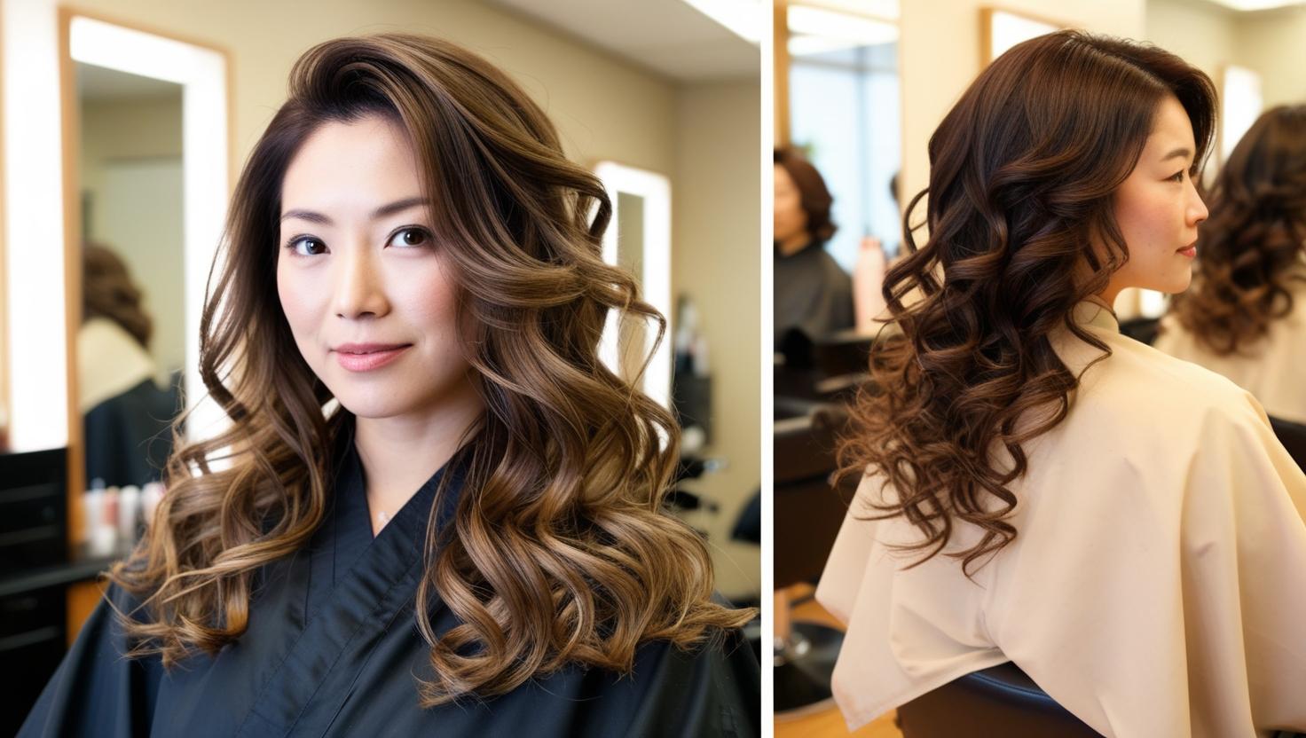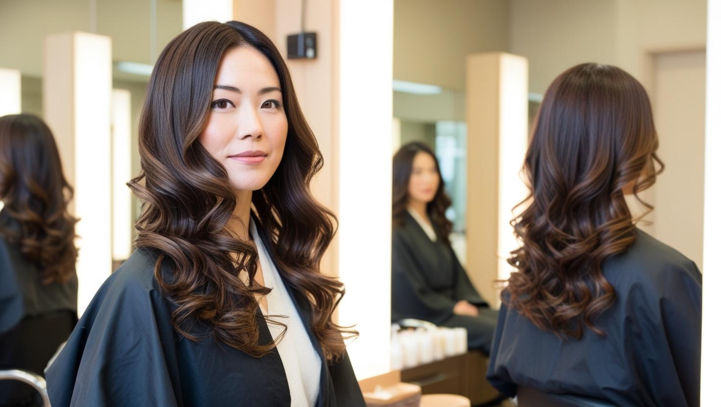 湿気が多い日は、強すぎるカールよりも自然なウェーブを選ぶと、スタイルが崩れ にくく、自然にまとまります。ストレートの部分とウェーブをミックスすることで、 全体的にまとまりやすくなります。