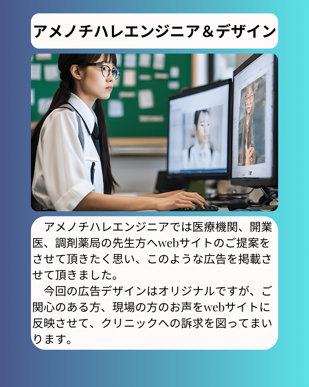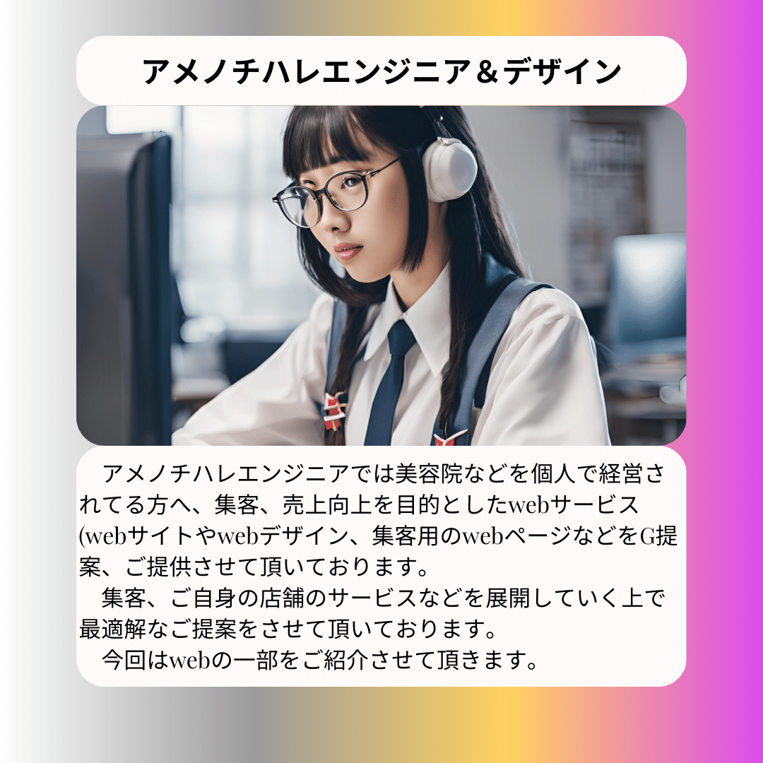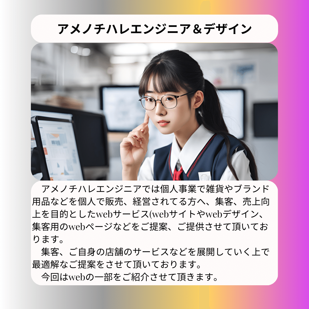 絶対にwebサイトや広告どうしたらいいって悩んでる方はいます。なのでアメノチハレエンジニア&デザインにご一報くださいませ。どうかよろしくお願いいたします。