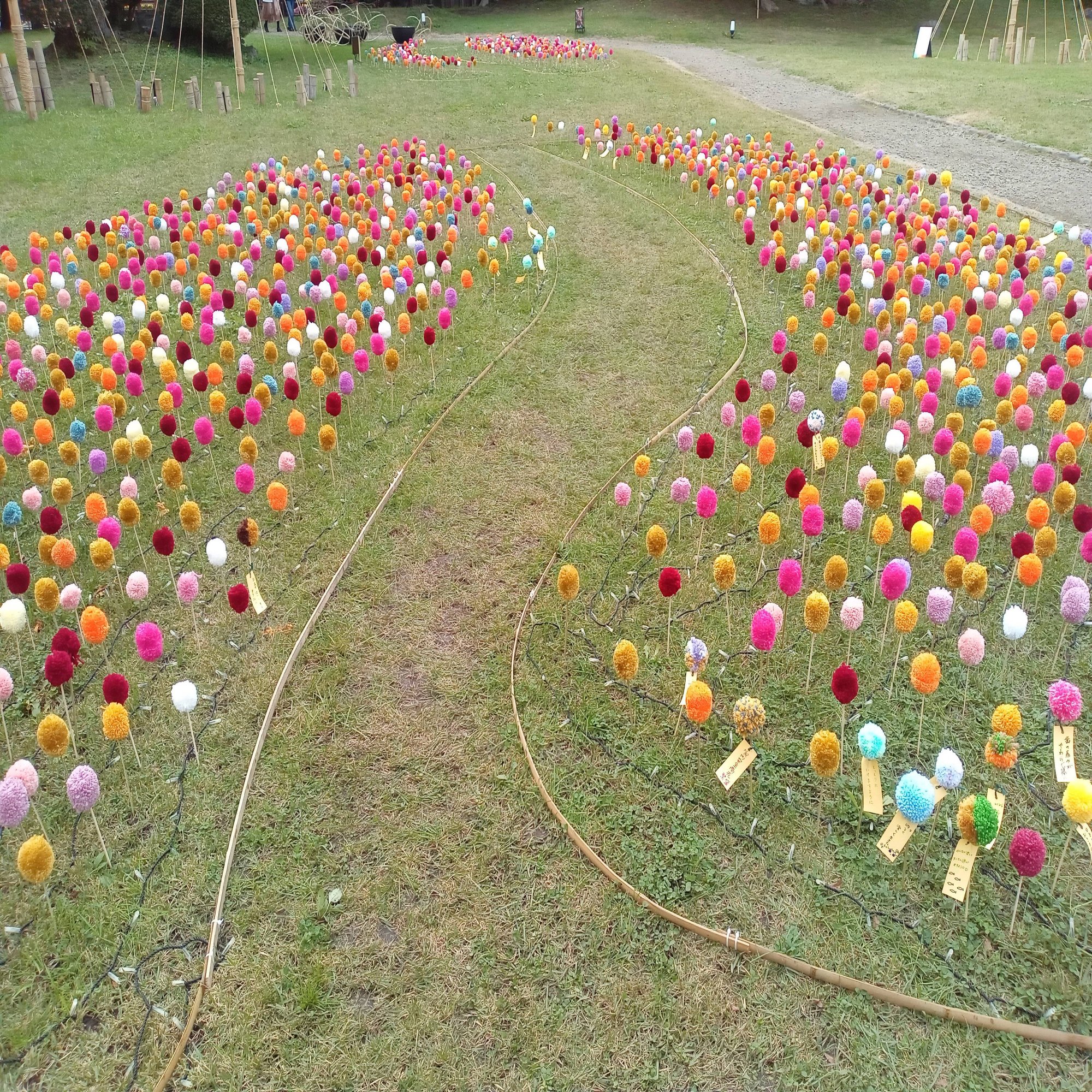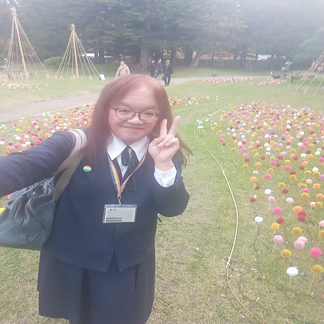こちらは弘前城植物園内に設置されたポンポンマムの庭にて自撮りしてきました(⌒∇⌒)