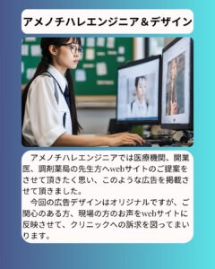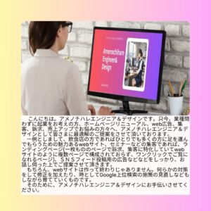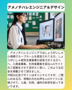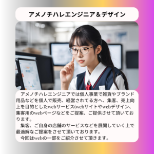 制作事例4の冒頭で紹介したアメノチハレエンジニア&デザインのwebサイト制作パッケージ販売促進、注文受付用のバナー広告です。instagramに12月28日に投稿して販促を促す目的です。Canvaで作成、生成AIも使用して「アメノチハレエンジニア&デザイン」訴求、代表プロフィールを改めてご案内する形として投稿させて頂きました。