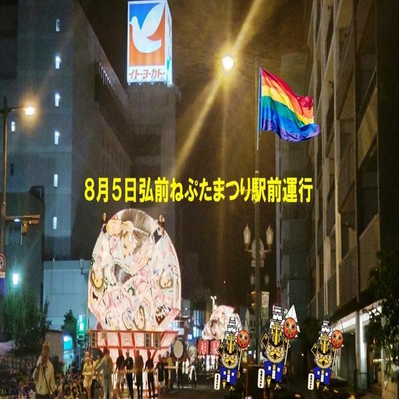 今はなきイトーヨーカドー弘前店の鳩マークが入る位置を意識して弘前ねぷたまつりの駅前運行日に写真撮影、素材画像貼り付けもしました。