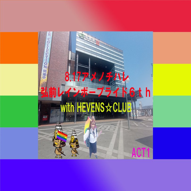 字体は同じですが、バックの6色レインボーはphotoshopのツールでグラデーションのフラッグをデザインしてその上に写真素材、ゆるキャラ、私の自撮りを組み合わせて作ってみました。